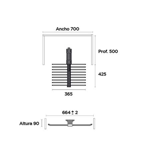 LINEA QUADRA – Para módulo de 700 mm. Guía Telescópica. Extracción total. Fijación superior.
