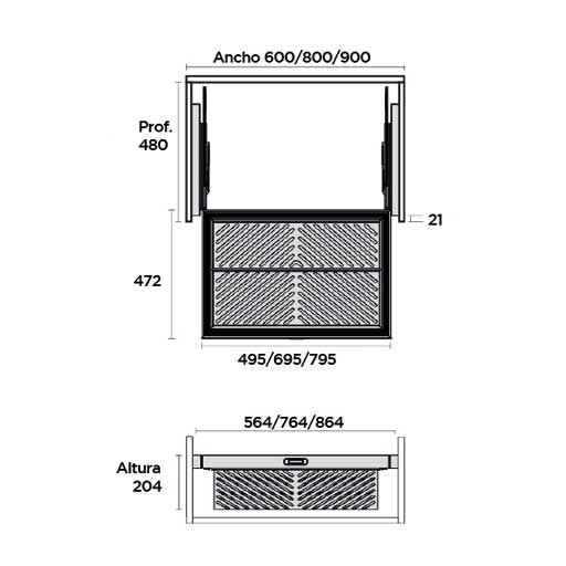 LINEA QUADRA – Para módulo de 800 mm. Fijación superior e inferior. Cantidad de estates:12